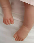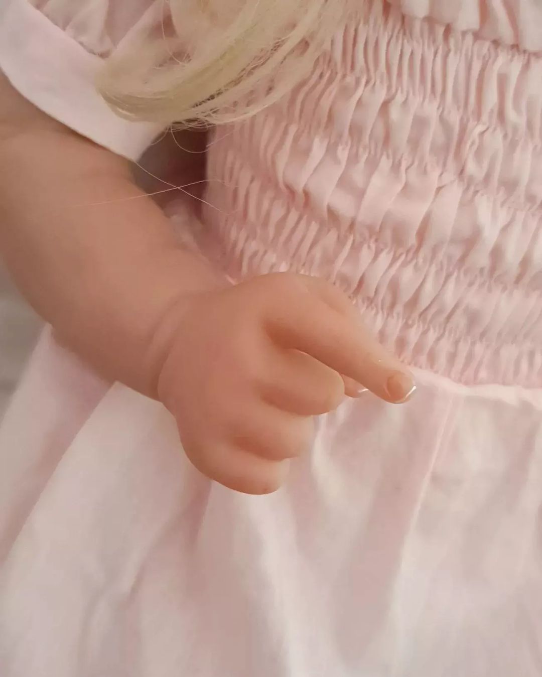 Healthy and Lively: Her poseable soft body is 20 inches from head to toe which is similar to 0-3 months baby. Movable limbs allowed you to put her in sitting and lying position with ease. Her weight is 1.87lb. Kids can take her to everywhere to play. A slight blush on the cute face makes this reborn baby doll look lifelike.